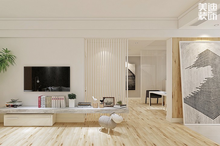 紋理清晰的木質(zhì)地板,仿佛記載著主人生活的點(diǎn)點(diǎn)滴滴。圓形的茶幾,細(xì)膩的木材質(zhì)感,給人溫和之余不失素雅。假花的裝飾,使得空間更富有情調(diào)。
