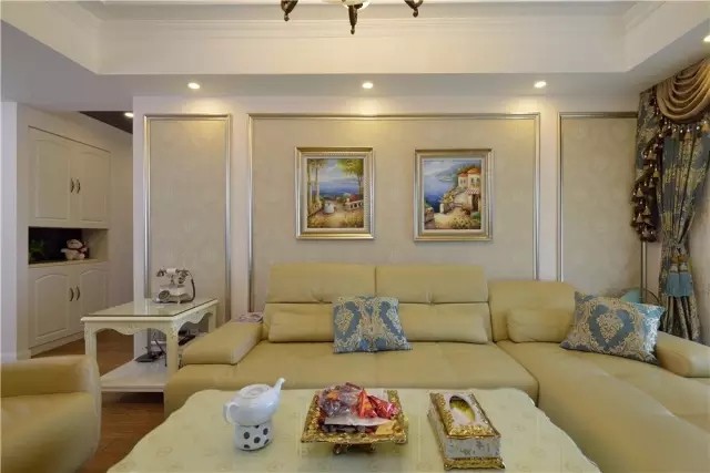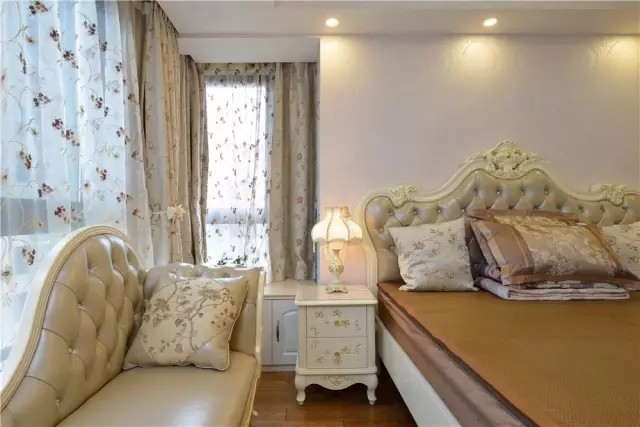 花紋的墻紙,顏色還是選擇了素雅一點的;加上風景裝飾畫,體現(xiàn)了歐式的風格,但又不會太花哨;客廳的窗簾外層是白色的薄紗,里層是深色厚布簾,再配上帷幔,增加了浪漫的效果。