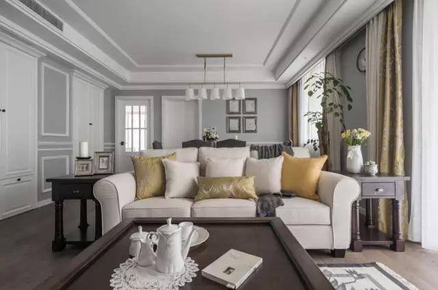 客廳整體以暖色調(diào)的氛圍多加以木色的修飾,在加上黃色抱枕的點(diǎn)綴,給人以溫馨家的感覺(jué)。尤其在陽(yáng)光的沐浴下更增添另一種韻味,客廳還是以白色為基調(diào),墻面是淺灰色乳膠漆,掛畫和壁燈裝飾,清新中帶一絲復(fù)古感,米色布藝沙發(fā)優(yōu)雅舒適,深色茶幾恰到好處,窗簾也是用了比較復(fù)古的風(fēng)格。
