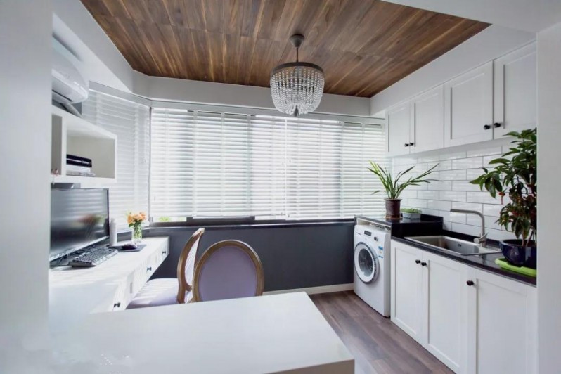 如果衛(wèi)生間面積實在是容不下一個洗衣機了,那么可以考慮放在廚房。