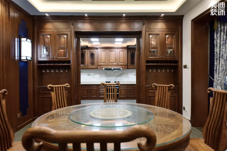 廚房也大面積采用原木色,充分彰顯出中式風格的沉穩(wěn)大氣的特點。