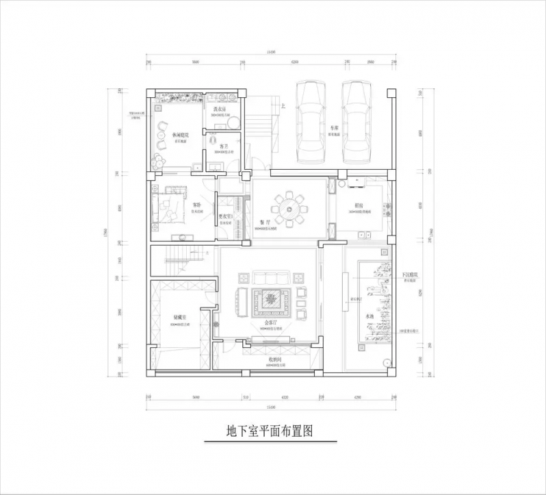 1、負一層:周港設計師將采光不夠的地下室變得通透又明亮,他保留了原有建筑的天井下沉式庭院空間,營造出有山有水的庭院小景,保證地下室陽光和空氣的對流。藻井中9根假梁的設置,使空間層次變化更明顯,還頗有寓意,地下室層高不夠的問題也一并解決了。