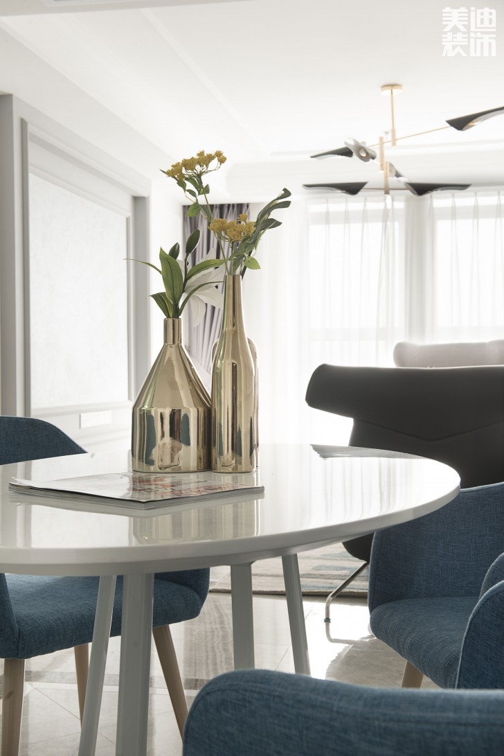 餐桌上加上金色擺件,頗有一番浪漫的情調(diào)。新古典主義會去除線條上過多的繁雜裝飾,保留細節(jié)。