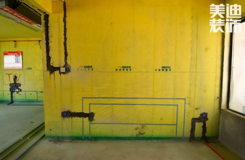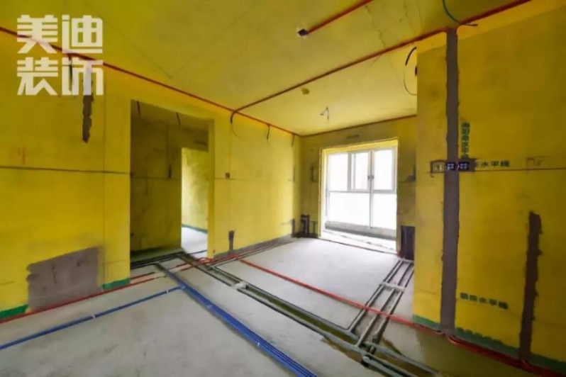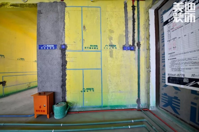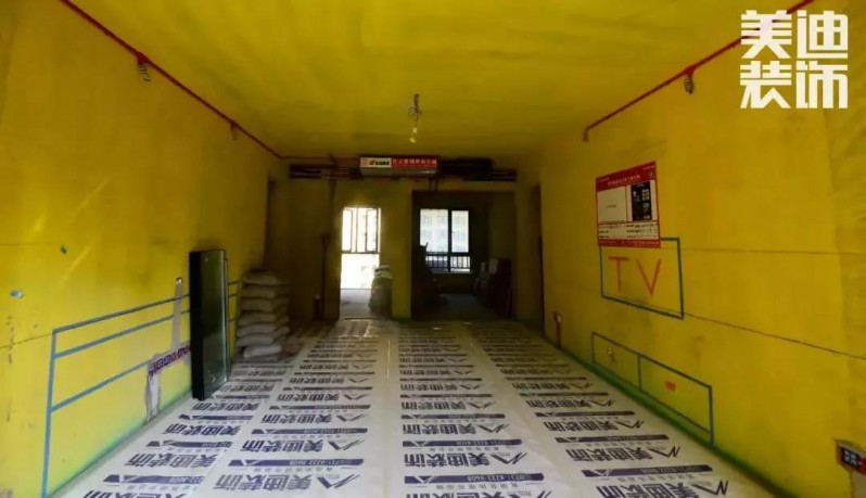 “裝修起始,水電先行”,這個(gè)工地在推送時(shí)處于水電驗(yàn)收階段。一進(jìn)門,便能看到貼有美迪裝飾專用的保護(hù)膜,這屬成品保護(hù)。它是保證裝修品質(zhì)的第一步,能對(duì)成品進(jìn)行嚴(yán)格保護(hù),預(yù)防二次破壞。