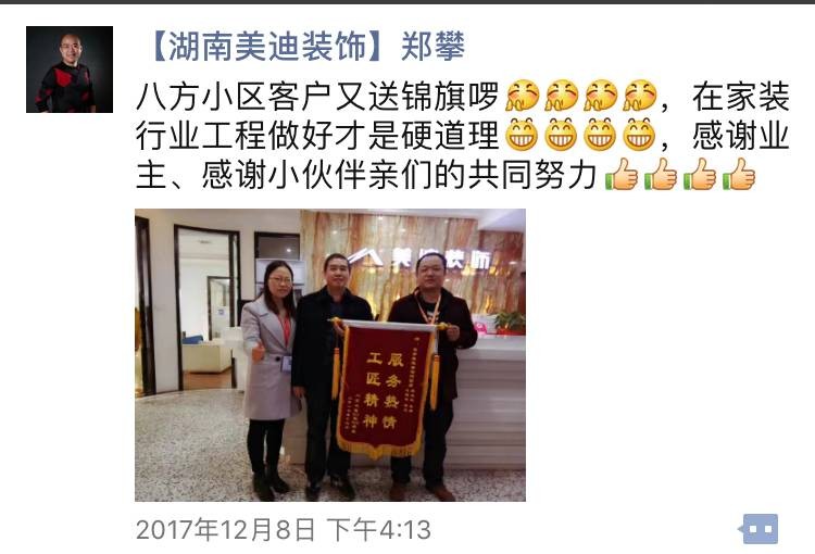 2003年加入美迪裝飾的他,用智慧和汗水書寫了一部人生勵志故事:從基層銷售員到店長,從店長再干到副總裁,他是勵志上進(jìn)的優(yōu)質(zhì)青年,他是湖南家裝行業(yè)的銷售標(biāo)桿,他是所有人眼中的敬業(yè)榜樣。16年,對待工作依舊滿腔熱情,他用正能量不斷感染著全體美迪人。