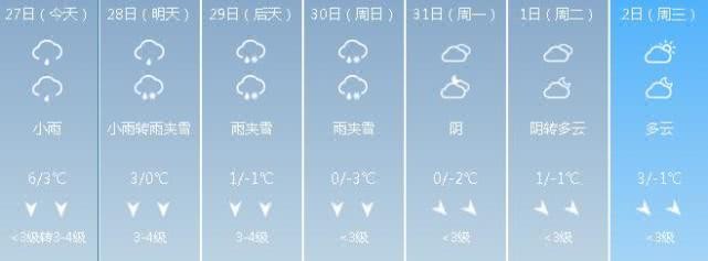 根據(jù)長沙市氣象臺發(fā)布的最新消息,未來幾天的最低氣溫將降至-3℃至-2℃,其中28日雨夾雪轉小雪,29日至30日中到大雪,31日至20191月1日,陰天有零星小雪,氣溫維持在0℃以下。冰凍持續(xù)4至5天,2日開始天氣轉好,氣溫回升。