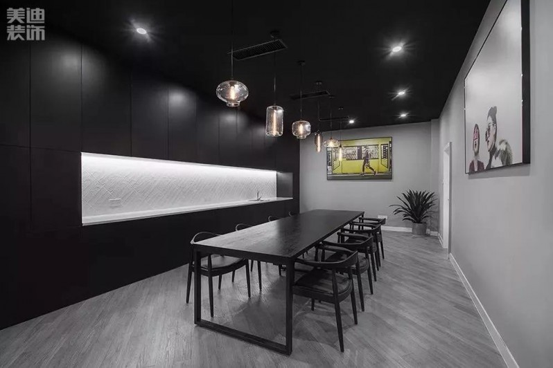 大面積的黑白灰整個(gè)空間線條簡潔,清晰,卻層次豐富,饒有趣味,展廳的藝術(shù)墻起到了隔斷作用同時(shí)展現(xiàn)了公司的企業(yè)文化,凸顯年輕時(shí)尚氣息。