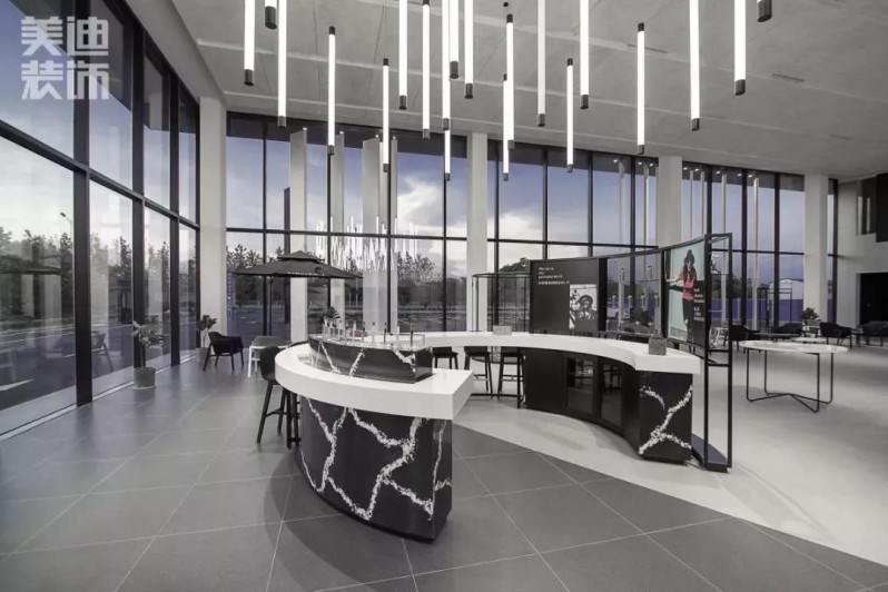 吧臺設(shè)計(jì)別具匠心,大理石吧臺高檔又愜意,能夠拉近與客戶的距離感,打造了一個(gè)輕松愉快的購車體驗(yàn)環(huán)境。