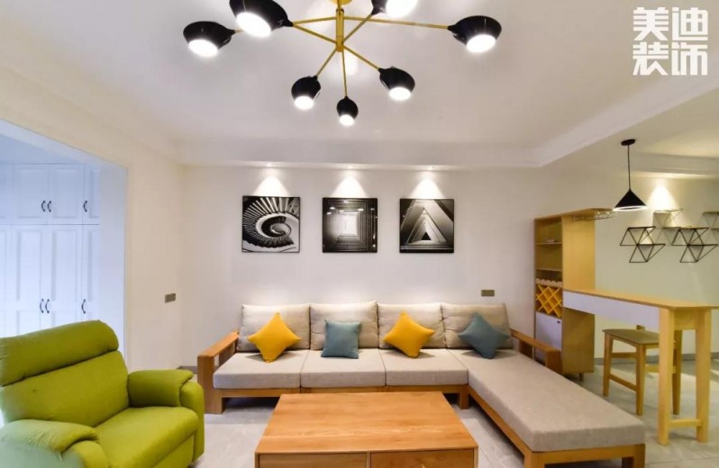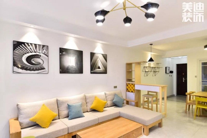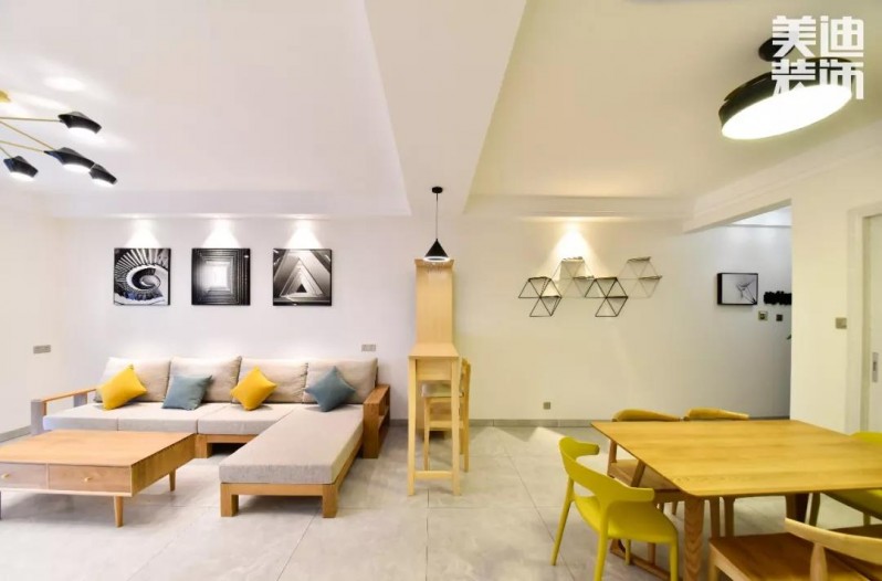 全屋以白色、灰色為主色調(diào),不同顏色家具混搭布置下,又增添了不少活力,簡單裝飾顯得整個(gè)家寬敞又整潔。