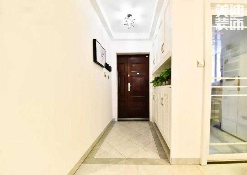 由玄關(guān)入室,便可直觀感受空間開闊。 鞋柜的底部留空處,小小的設(shè)計(jì)卻讓業(yè)主的居住過程中更加便捷,用地面瓷磚區(qū)分空間,簡單實(shí)用。
