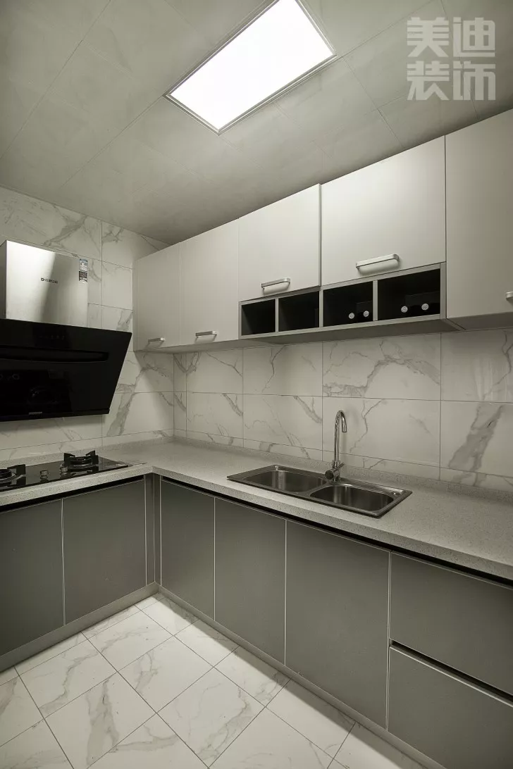 廚房我家做的L型櫥柜,廚房面積本身不大,這樣能節(jié)省空間,兩個人操作完全沒有問題。
