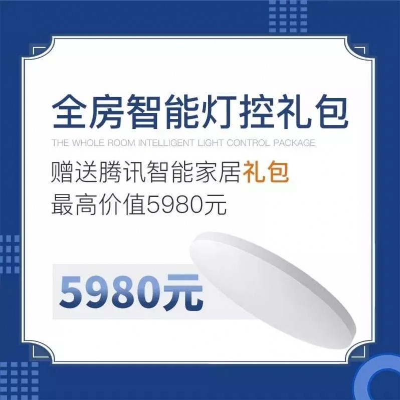 騰訊智能禮包任你選,最高價值5980元全房智能燈控禮包或智能安防禮包二選一。