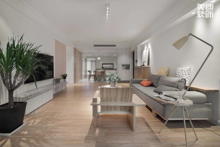設(shè)計(jì)周軍華這組設(shè)計(jì)怎么看都是滿屏的春天感。原木色系的木具家裝,遇上淺灰色系,在加上一點(diǎn)點(diǎn)色和綠色的點(diǎn)綴,像是初春萌芽的松動(dòng)~