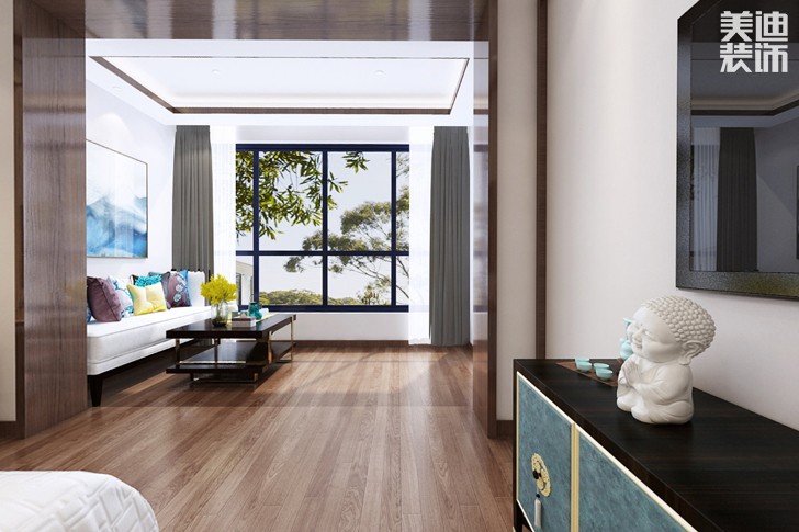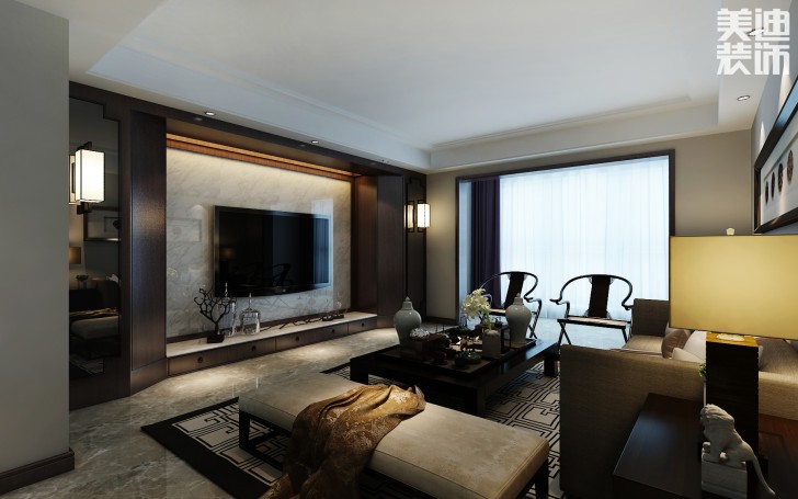 中式家具內(nèi)斂含蓄,在混搭的基礎(chǔ)上,全屋的空間色調(diào)保持和諧一致。