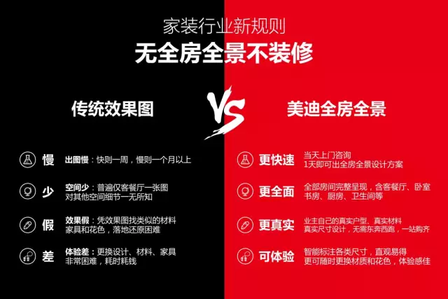 美迪裝飾“家裝行業(yè)新規(guī)則,無全房全景不裝修”活動(dòng)全面啟動(dòng)?;谔摂M現(xiàn)實(shí)技術(shù),將傳統(tǒng)的平面呈現(xiàn)方式轉(zhuǎn)變?yōu)榱Ⅲw全景式,帶來沉浸式視覺體驗(yàn),借助VR技術(shù),還可實(shí)現(xiàn)“身臨其境未來家”使用體驗(yàn)。