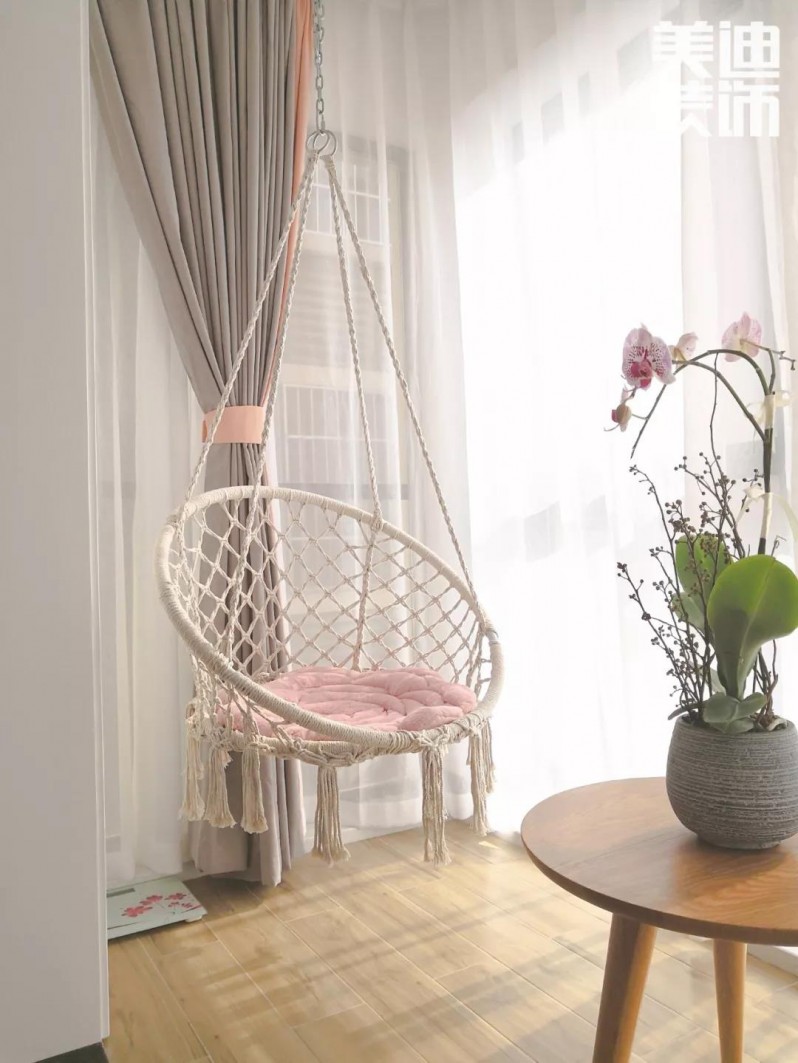 一邊是吊椅,一邊則放置著小書(shū)桌,一縷陽(yáng)光灑下來(lái),真是好不愜意啊!