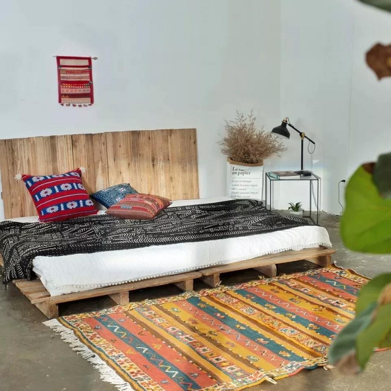 小美提示:臥室地毯最常見的鋪法是用床尾壓住二分之一的位置。色彩濃郁的民族風地毯,特別適合北歐風格的純白房間,整個空間被一抹顏色點亮。