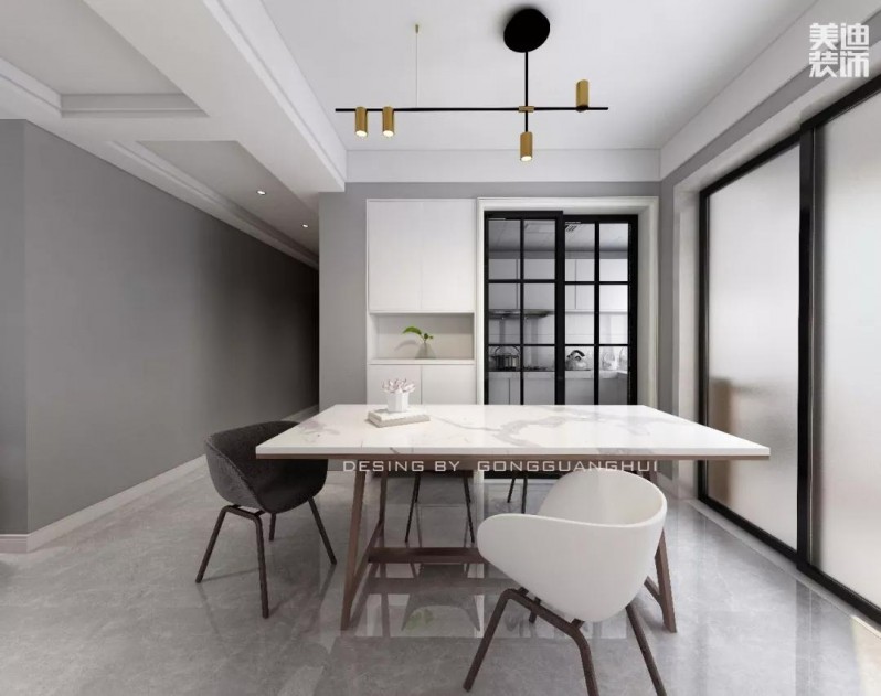 龔廣輝設(shè)計(jì)師通過材質(zhì)、色彩的運(yùn)用和軟裝的搭配將輕奢風(fēng)打造得淋漓盡致。同時(shí)巧妙運(yùn)用玻璃、瓷磚、金屬等材料來拓寬視覺感及表現(xiàn)光影的和諧,創(chuàng)造出直撩心底的優(yōu)雅魔力,讓時(shí)尚、輕奢成為這個(gè)空間的一大亮點(diǎn)。