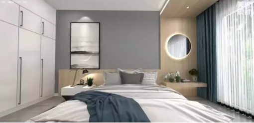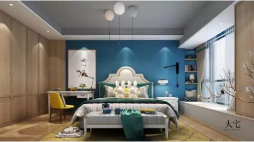 臥室的床頭是你實現(xiàn)喜歡顏色的好地方?,F(xiàn)在都是功能至上的時代,中小戶型很少有在臥室做豐(fu)富(kua)造型的,如果只是四面大白墻,有些未免覺得單調了點,刷上一面有色的墻面,效果會好很多。
