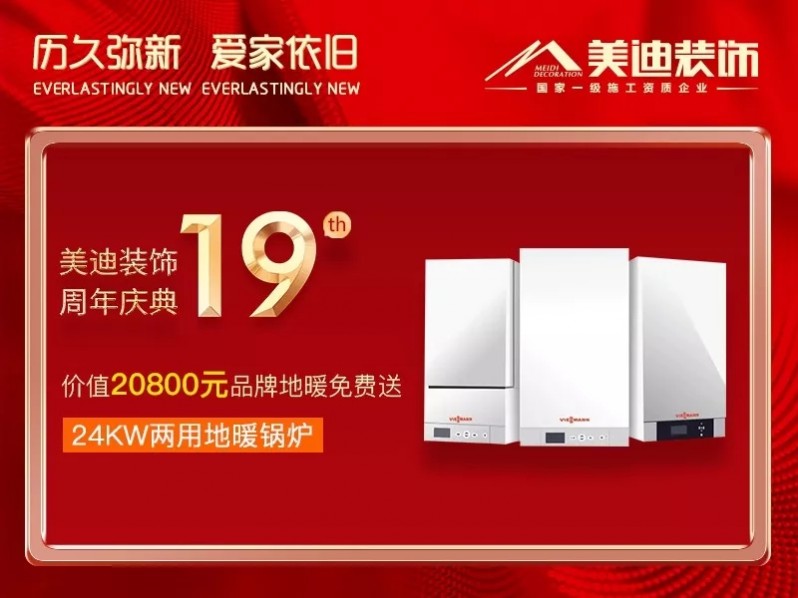 美迪裝飾19周年店慶,價(jià)值20800元德國(guó)菲斯曼24KW兩用地暖鍋爐免費(fèi)送。