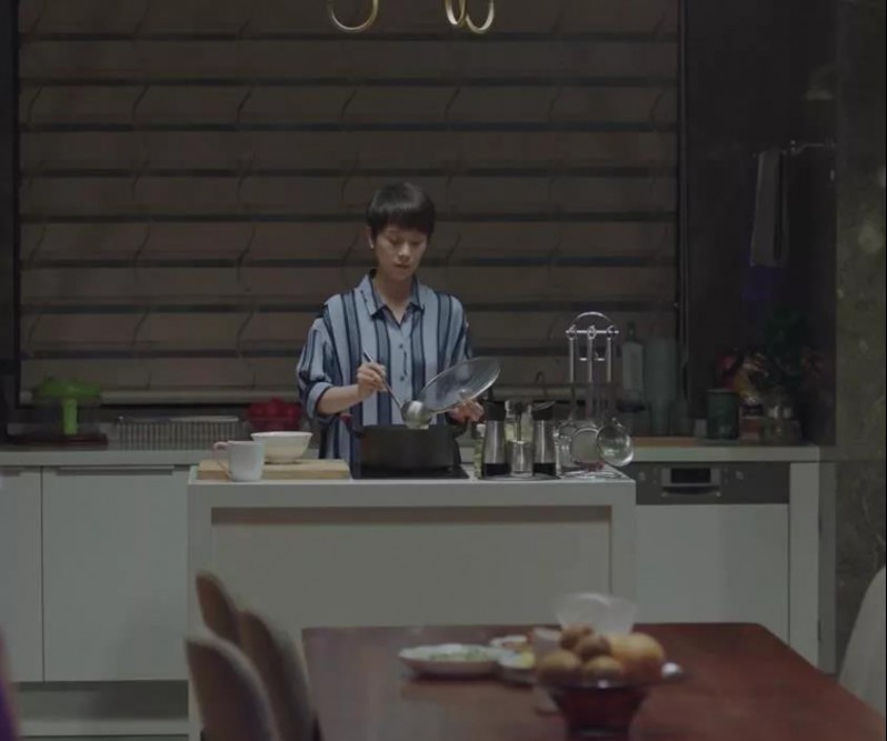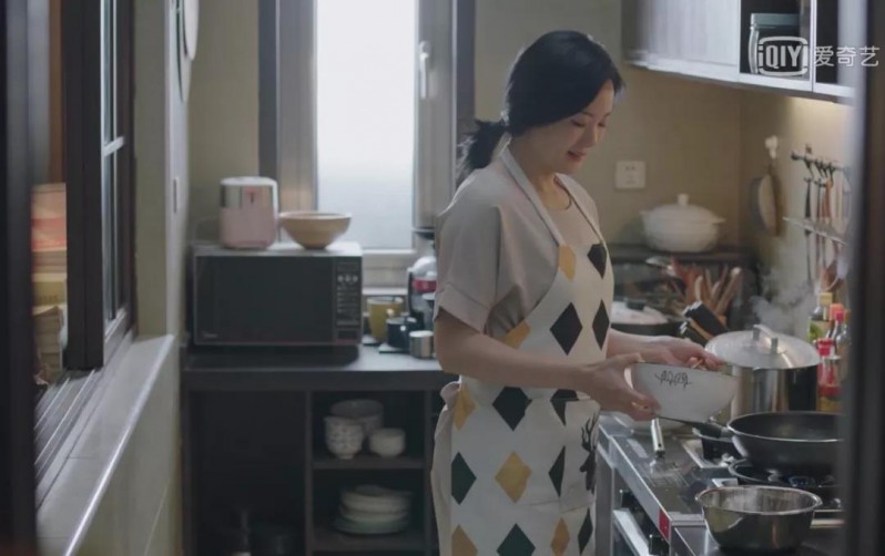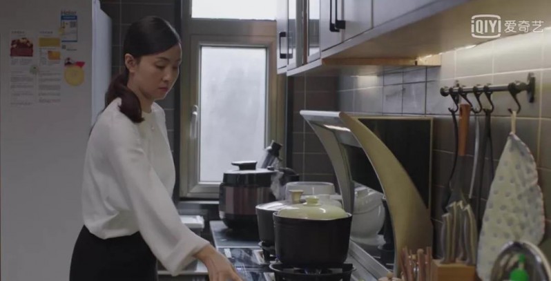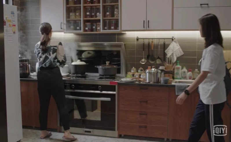 這種溫暖的色調,干凈整潔的墻面,擺放的整整齊齊的罐子,充滿了中國式家庭的煙火氣,每當宋倩在這里為英子煲湯時,一定是很幸福的吧!