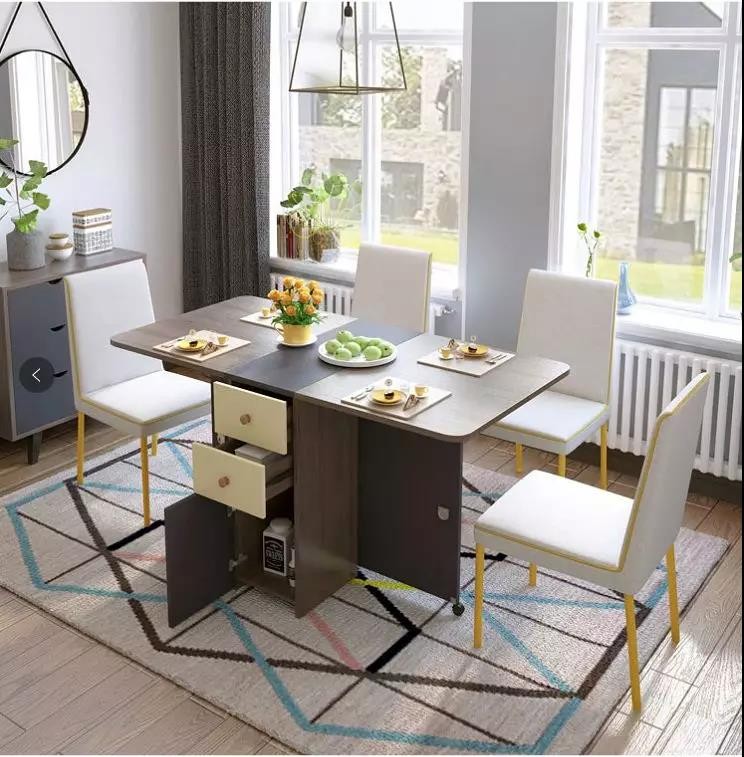 變大變小的餐桌,適合父母/朋友偶爾過來吃飯的家庭,不使用時不占空間,使用時將其打開即可。