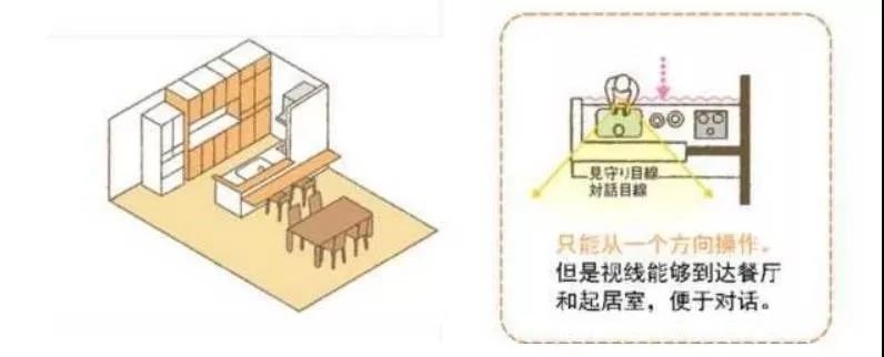 像這樣的小吧臺餐廳形式,它更適合不常做飯或輕油煙的家庭,如果是需要經(jīng)常做飯和重油煙的,還是選擇其他方法吧!
