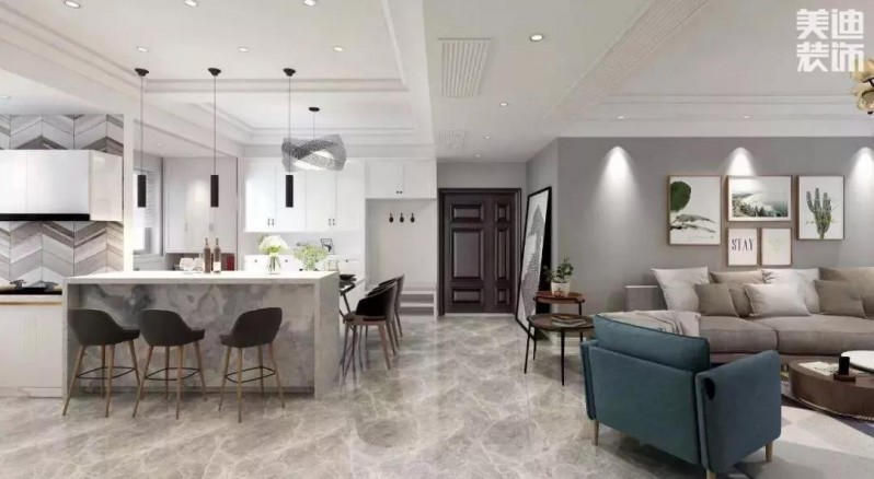 在物業(yè)和燃?xì)夤驹试S的前提下,家里也以輕油煙烹飪?yōu)橹鳎蚝苌偈褂脧N房的情況下,可選擇裝修成開放式廚房。
