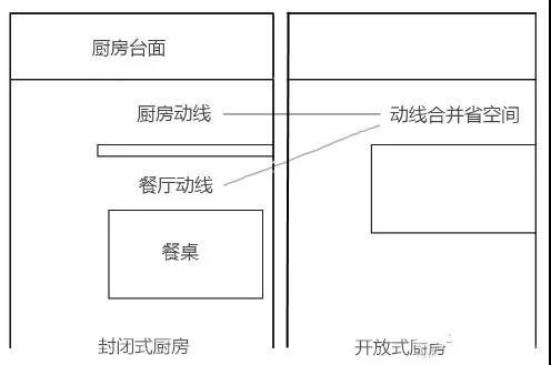 從上圖可以看出來,很明顯的開放式廚房節(jié)約了一條動線。