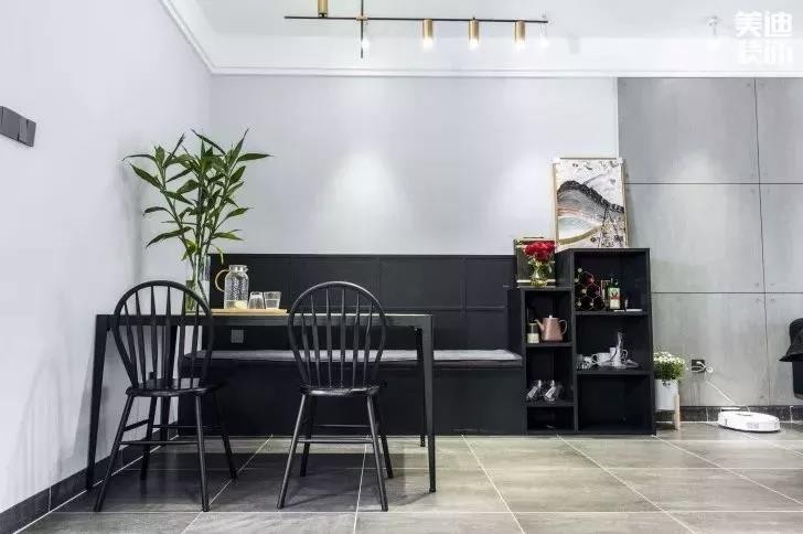 而且卡座可以和收納結(jié)合起來,不如進門就是餐廳的戶型,把卡座和矮鞋柜結(jié)合,上方還可以擺放綠植和裝飾畫,更加美觀。