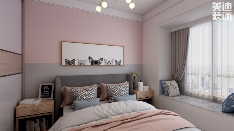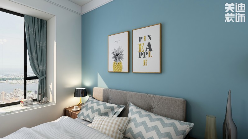 孟鈺設(shè)計(jì)師在白色+淺黃基礎(chǔ)下,利用裝飾畫及格調(diào)小物裝點(diǎn)營造出顏色反差的視覺效果,為居住者帶來愜意的生活感受。另外,木質(zhì)元素與綠植的加入,彌漫著自然與精心生活的痕跡。