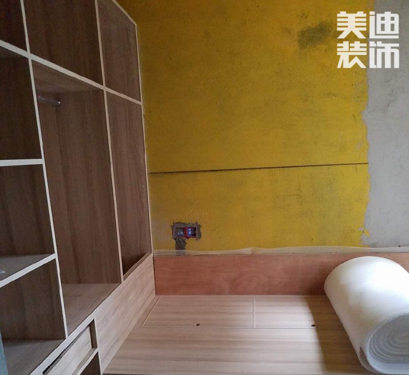 5月底,柜子打完師傅們鋪上了保護(hù)膜,進(jìn)行成品保護(hù),膩?zhàn)右稳?,這半個(gè)月我?guī)缀鯖]去現(xiàn)場(chǎng),都是監(jiān)理給我拍的圖,期待刷完后的樣子。