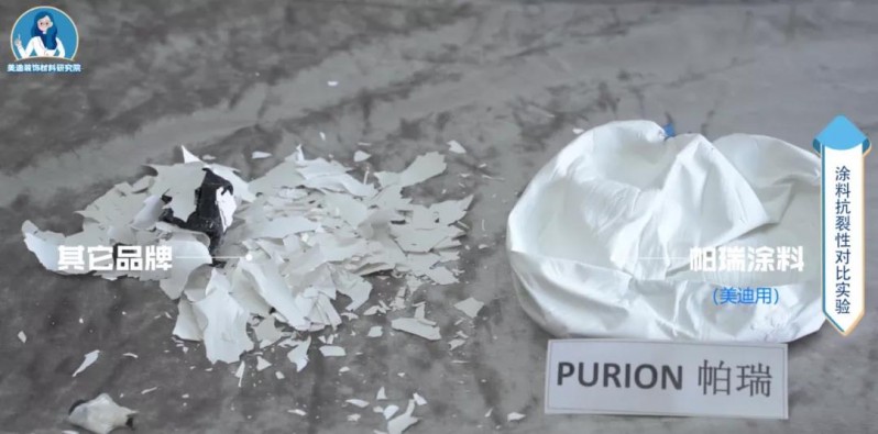 測評結(jié)果:從上圖我們可以看到,其他品牌在放氣過程中有明顯撕裂,破裂處有明顯粉末掉落;而帕瑞涂料漆膜完整,有較強(qiáng)延展性,施加外力也不易破裂和粉化,使用壽強(qiáng)于其他品牌。