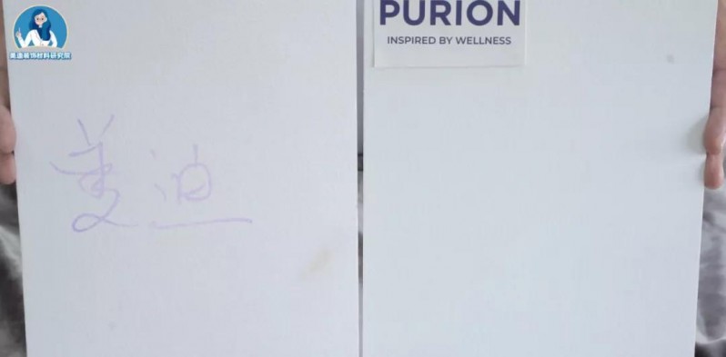 測評結(jié)果:通過上圖的試驗(yàn)對比可以看到,帕瑞樣板上的留下的筆印可以輕松擦除且不留印子,而其他品牌墻漆的樣板上用毛巾用力擦除后仍留有明顯的筆印。帕瑞涂料表面會形成一層光滑的致密性漆膜,防止污物留痕,抗污性更強(qiáng)!
