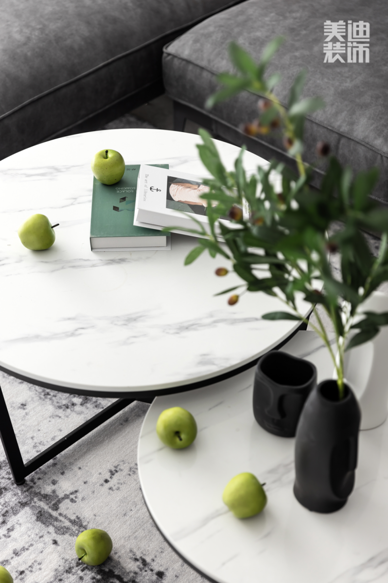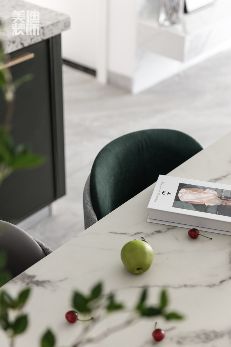 餐桌、餐椅選擇了簡單的幾何造型,搭配大理石桌面,契合了簡約的設(shè)計(jì)理念。