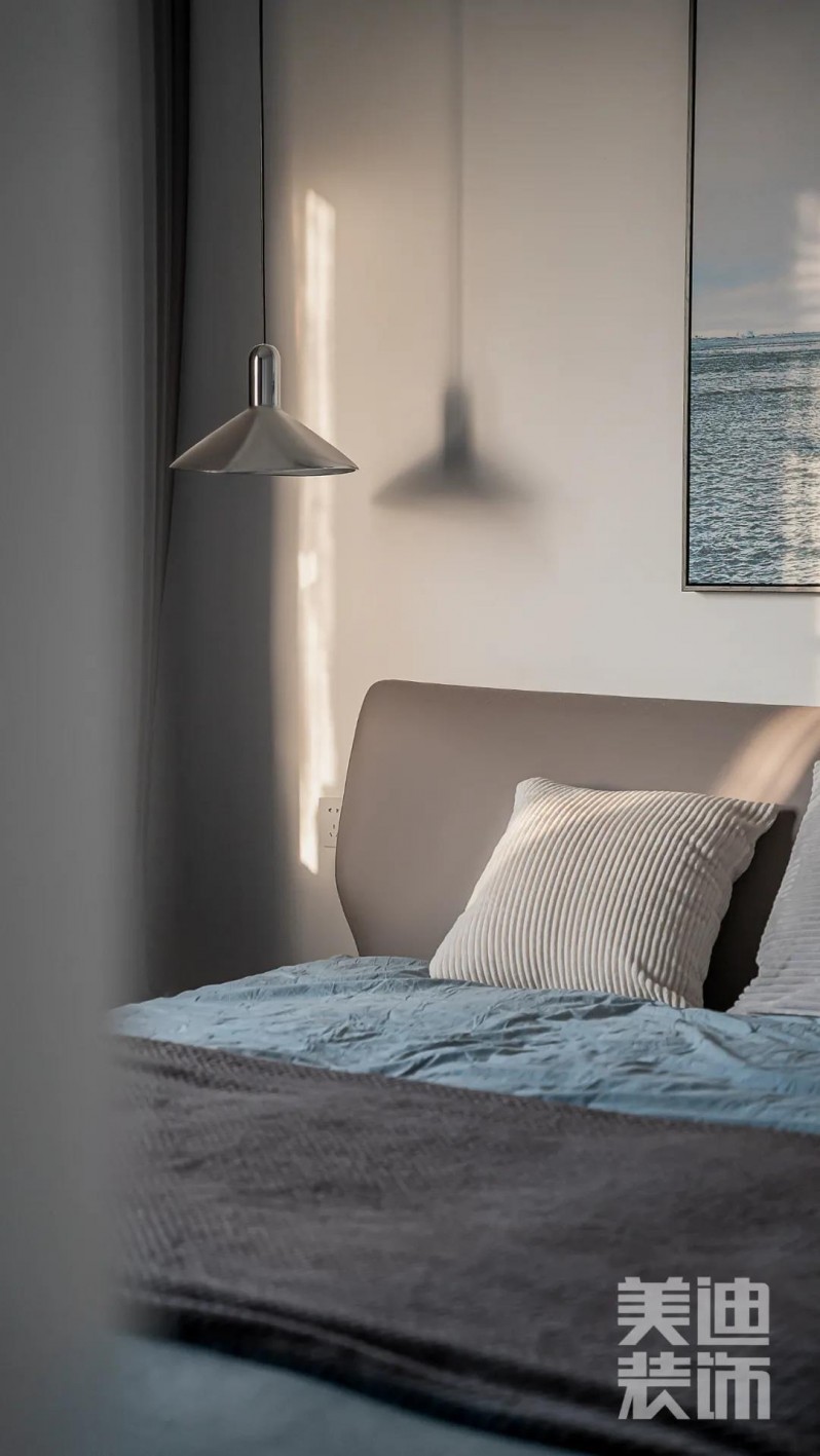 溫潤(rùn)的床品顏色,營(yíng)造舒適的睡眠氛圍,床頭裝飾畫增添藝術(shù)感,吊燈為夜間生活提供照明光線,美觀實(shí)用又非常的大氣,陽(yáng)光照進(jìn)臥室就如同理想生活照進(jìn)現(xiàn)實(shí)。