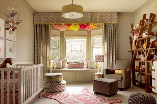 房間色彩要鮮亮--五彩繽紛、如童話世界一般的房間最受小朋友的歡迎!另外,房間色彩鮮亮好處多,可以改善室內(nèi)亮度,訓(xùn)練您的寶寶對色彩的敏感度,還能培養(yǎng)他們開朗向上的性格。大孩子的房間在設(shè)計上不妨多加對比色。但嬰兒房的顏色不宜太搶眼,選定一套粉色系即可。