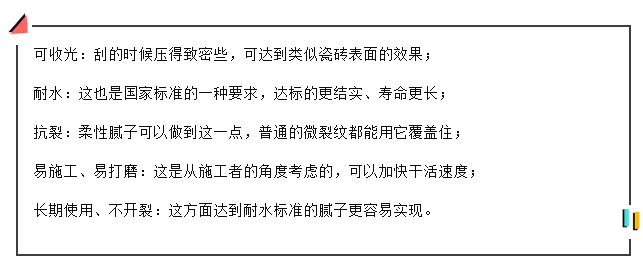 膩子最基本的功能就是找平和涂白,但除此之外,在勞動人民的偉大創(chuàng)造力與先進的科學研究結合之下,膩子的發(fā)展演變也是十分迅速的,現(xiàn)在市場上能找到的膩子已經(jīng)具備了很多其他的功能,比如:
