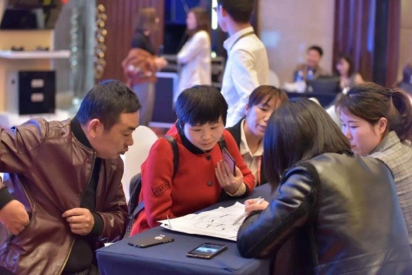 業(yè)主與設(shè)計師面對面交流裝修設(shè)計方案