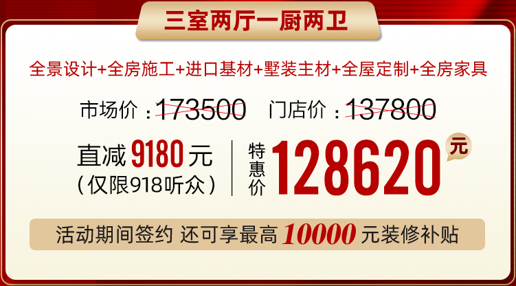 ② 符合條件的聽眾,在享受特惠價和現(xiàn)金直免的基礎上,最高可領取10000元裝修補貼