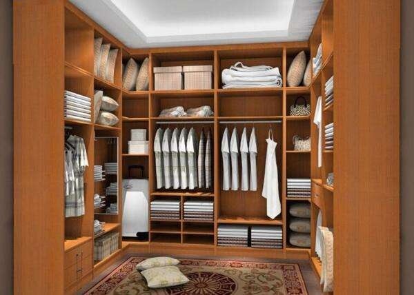 衣帽間家具可以再外面購買,也可以在裝修時整體設(shè)計制作,為節(jié)省空間,衣帽間最好設(shè)計成推拉式,里面的衣櫥可以不做門。
