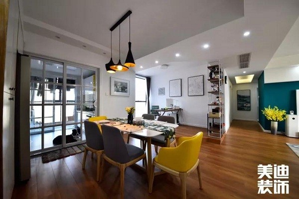 恰好進(jìn)門(mén)餐廳的原型又顯得比較封閉,經(jīng)過(guò)多次的討論與設(shè)計(jì)后,調(diào)換了主衛(wèi)與次衛(wèi)的空間,把書(shū)房改成了開(kāi)放式。經(jīng)由美迪裝飾設(shè)計(jì)師秦文霞老師之手,深得人心,最終完成了一幅簡(jiǎn)單又舒適的美麗畫(huà)卷,既實(shí)用又美觀。