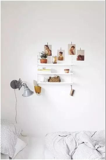 擱架板是一個(gè)臥室收納的最佳選擇,因?yàn)榭梢愿鶕?jù)臥室布局的不同進(jìn)行自由排列,可以作為擺放照片或者裝飾畫,也可以作為書架,就在床上觸手可及的地方,省去了打孔的麻煩,從墻面延伸出來,不占用空間又能打造一個(gè)小巧的閱讀區(qū)或者是裝飾區(qū)。