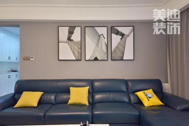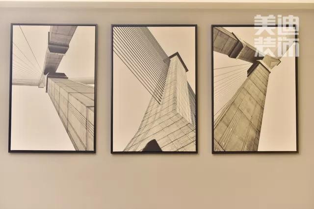 客廳沙發(fā)上的壁畫也是設(shè)計師為業(yè)主精心挑選的,建筑的灰白調(diào),以及層次分明的線條感,極大程度上提升了整個空間的格調(diào)。