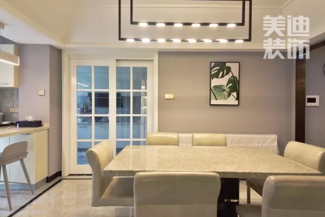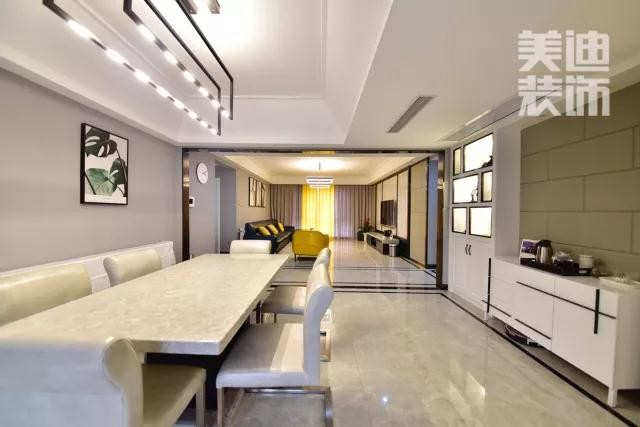 包括客廳上的吊燈,也是極具設(shè)計與線條感,與壁畫的搭配相輔相成。