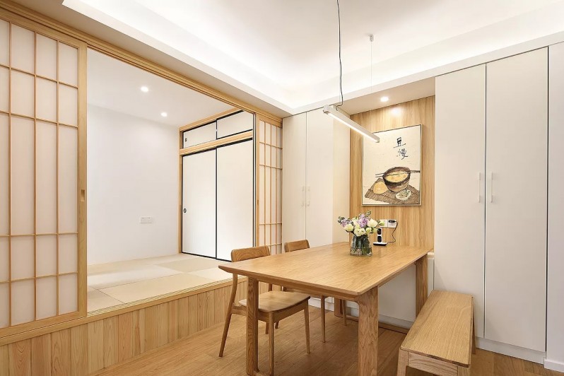 日式裝修風(fēng)格,以舒適感和清新感為主,這款90平方房子裝修,以原木色為主色調(diào),通過合理的空間調(diào)配和協(xié)調(diào),房子整體設(shè)計(jì)簡潔,明快,加上一些裝飾作為搭配,不僅視覺上擴(kuò)充了空間,同時(shí)也營造了一股自然的氛圍。