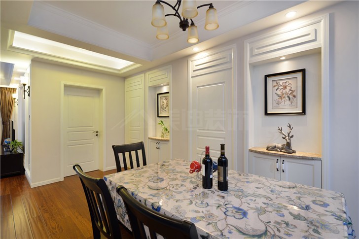 餐廳的面積不大,餐桌的大小恰到好處,簡約美觀的同時還增加了用餐人數的空間。富有藝術氣息的動物裝飾及壁畫給人一種溫暖愉悅的感覺。