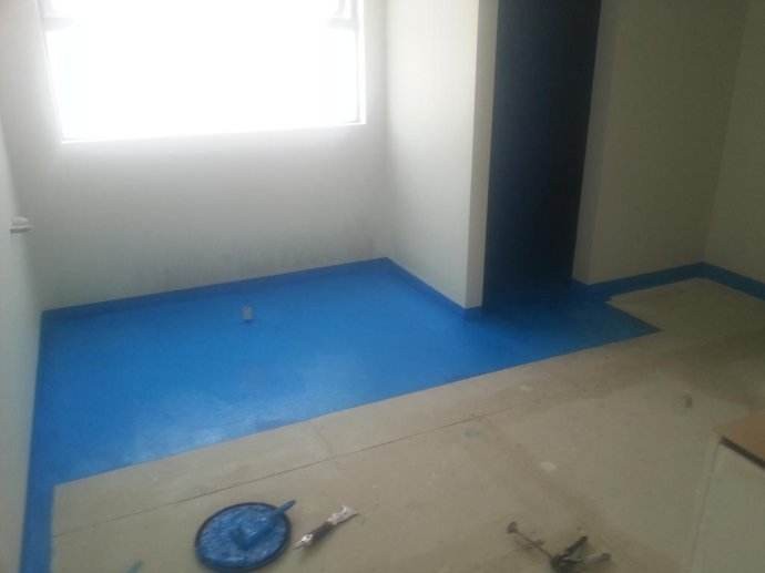 將配好的涂膜防水材料,用塑料滾刷或橡皮刮板均勻涂刮在已涂好的基層表面,不得有漏刷和鼓泡等問(wèn)題。等24小時(shí)干后,可進(jìn)行第二遍涂膜防水層。