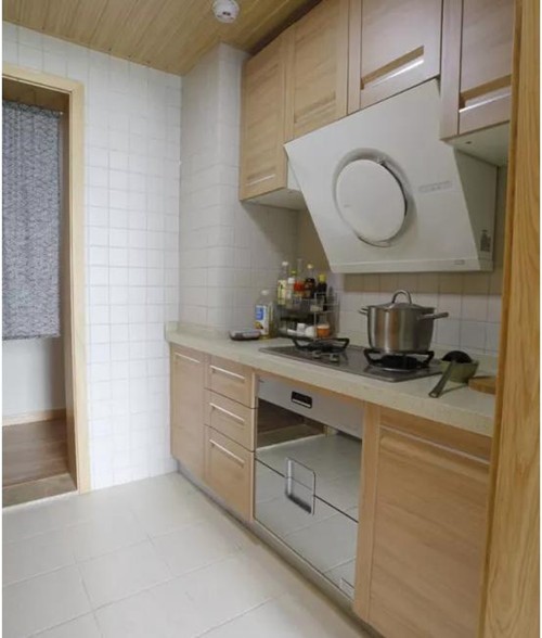 廚房也契合了日式風(fēng)格的核心,沒有太多復(fù)雜的物品和裝飾,視覺上給人一種清新明亮的感覺。原木色和白色搭配,顯得舒適又平靜,讓整個空間都顯得比較精致整潔。