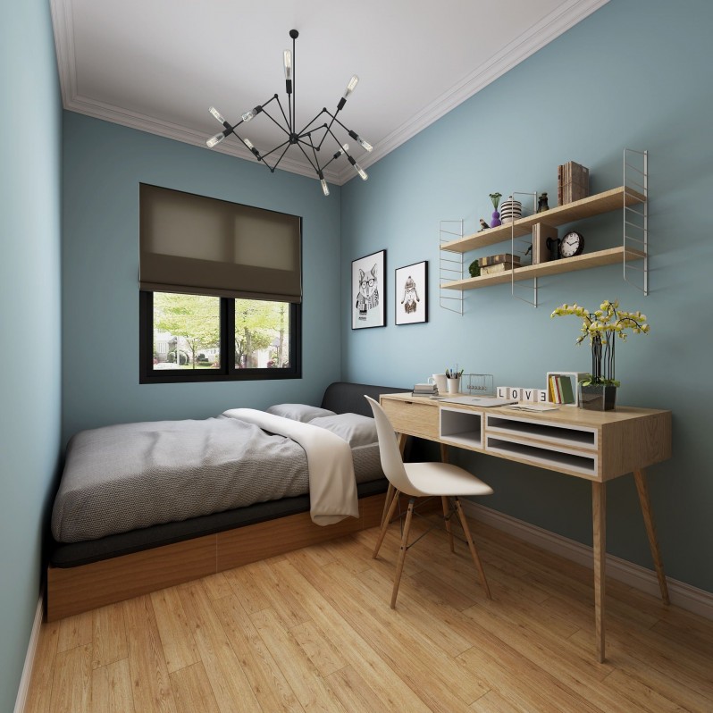 3、雙人主臥室的最標準面積=12㎡,夫妻二人的臥室不能比這個再小了,在這樣的房間里除了放一張必備的床以外,還可以放一個雙開門的衣柜(120*60)和兩個床頭柜。